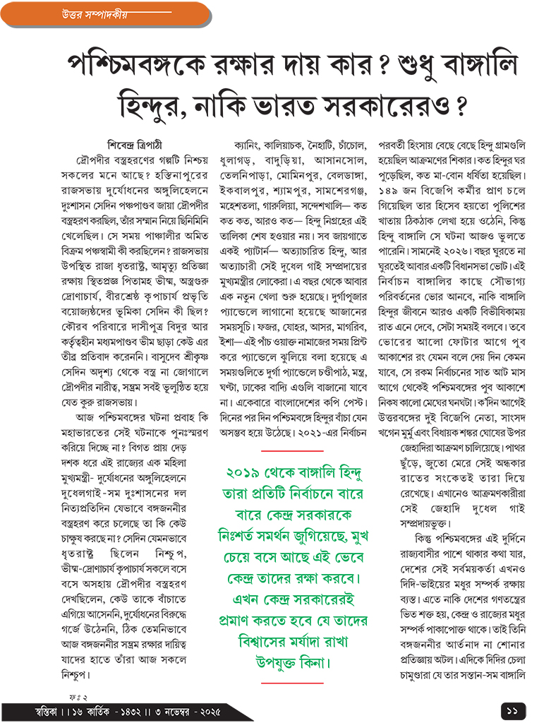 পশ্চিমবঙ্গকে রক্ষার দায় কার? শুধু বাঙ্গালি হিন্দুর, নাকি ভারত সরকারেরও?