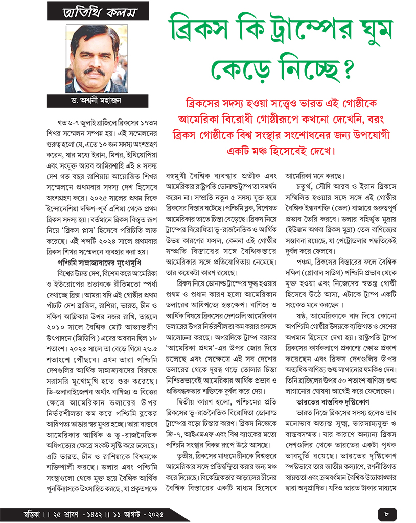 ব্রিকস কি ট্রাম্পের ঘুম কেড়ে নিচ্ছে?