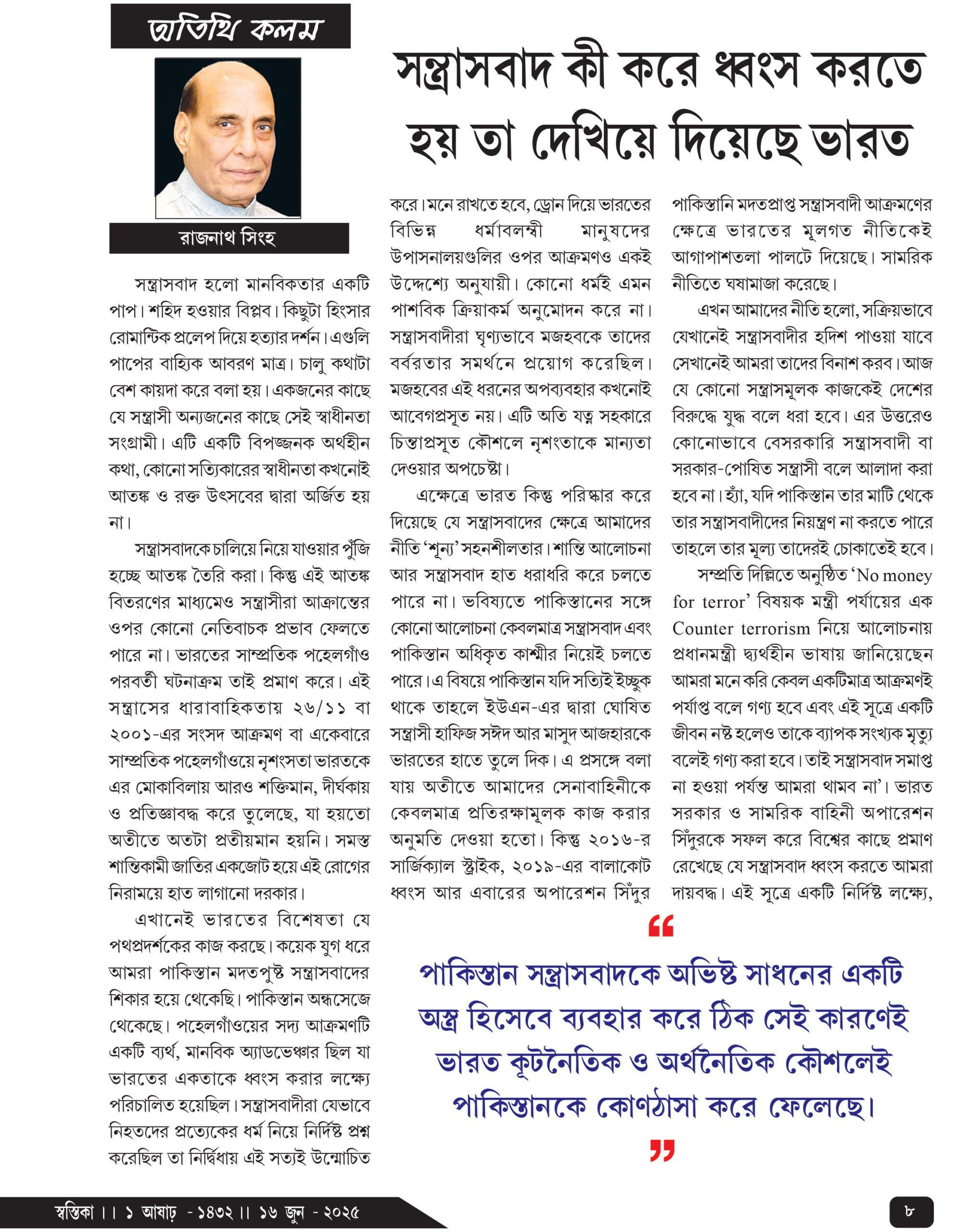 এখানেই ভারতের বিশেষতা যে পথপ্রদর্শকের কাজ করছে। কয়েক যুগ ধরে আমরা পাকিস্তান মদতপুষ্ট সন্ত্রাসবাদের শিকার হয়ে থেকেছি। পাকিস্তান অন্ধসেজে থেকেছে। পহেলগাঁওয়ের সদ্য আক্রমণটি একটি ব্যর্থ, মানবিক অ্যাডভেঞ্চার ছিল যা ভারতের একতাকে ধ্বংস করার লক্ষ্যে পরিচালিত হয়েছিল। সন্ত্রাসবাদীরা যেভাবে নিহতদের প্রত্যেকের ধর্ম নিয়ে নির্দিষ্ট প্রশ্ন করেছিল তা নির্দ্বিধায় এই সত্যই উন্মোচিত