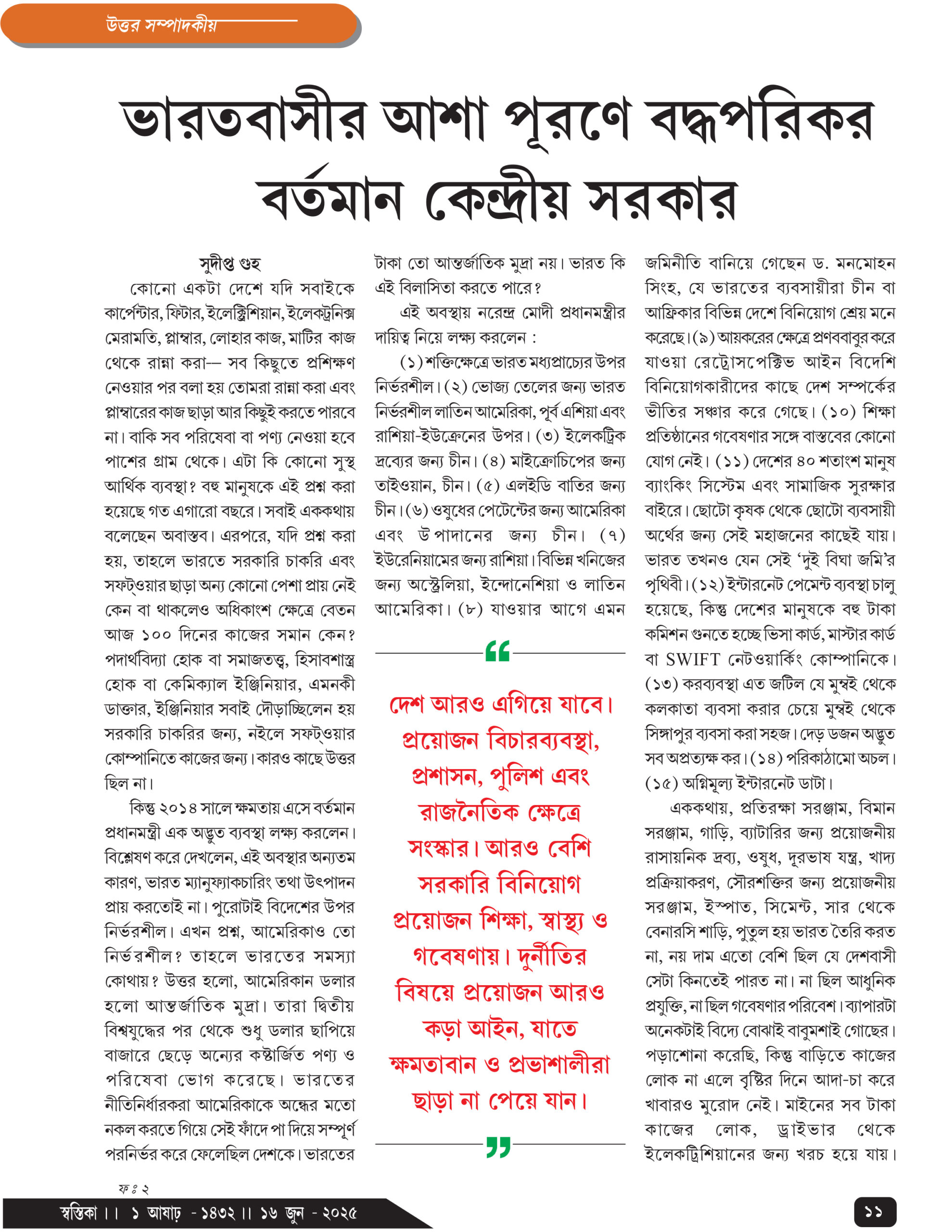 ভারতবাসীর আশা পূরণে বদ্ধপরিকর বর্তমান কেন্দ্রীয় সরকার