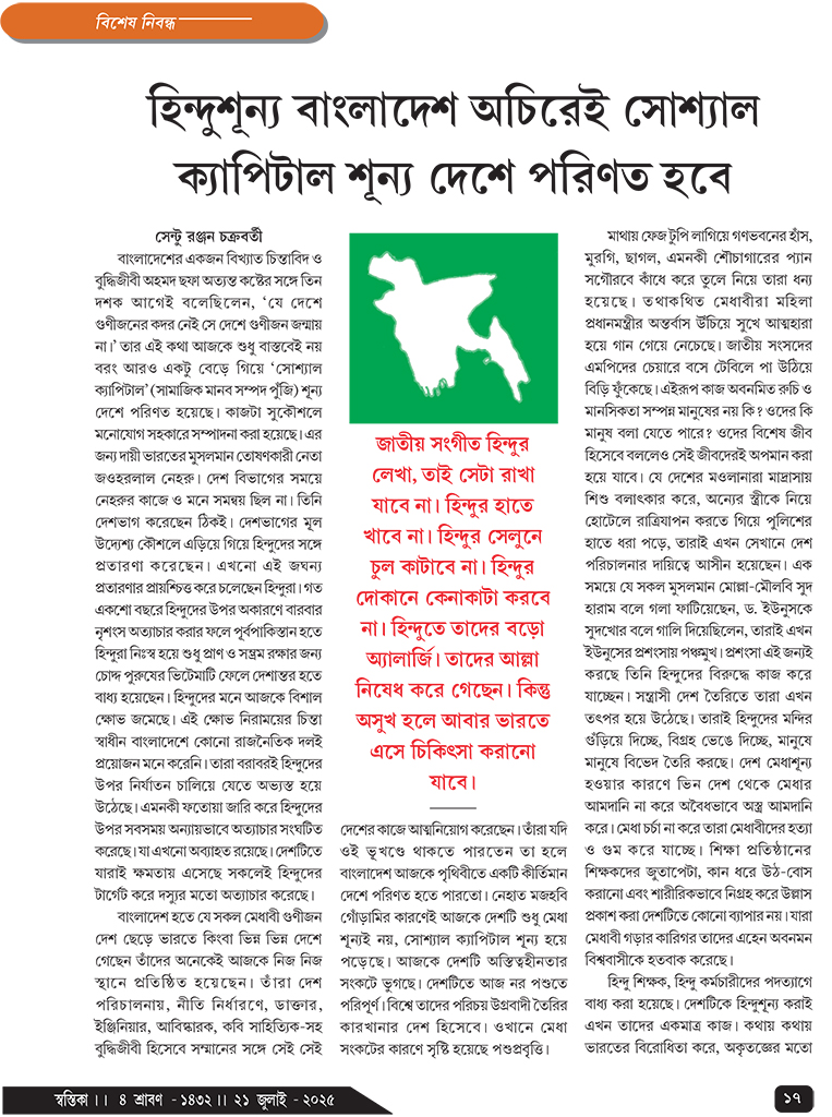 হিন্দুশূন্য বাংলাদেশ অচিরেই সোশ্যাল ক্যাপিটাল শূন্য দেশে পরিণত হবে