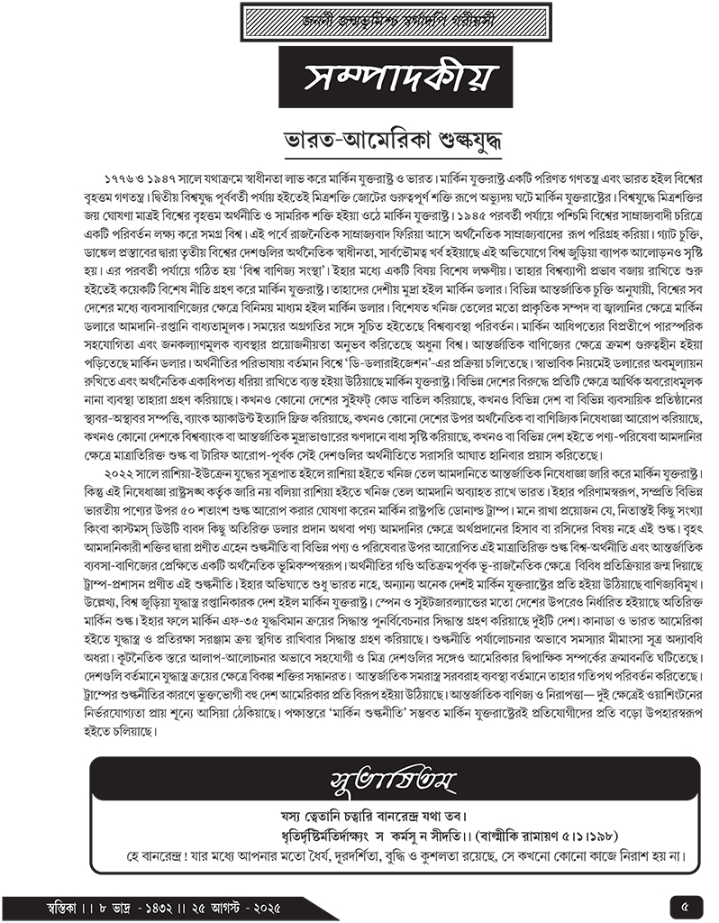 ক্ষেত্রে মাত্রাতিরিক্ত শুল্ক বা টারিফ আরোপ-পূর্বক সেই দেশগুলির অর্থনীতিতে সরাসরি আঘাত হানিবার প্রয়াস করিতেছে।