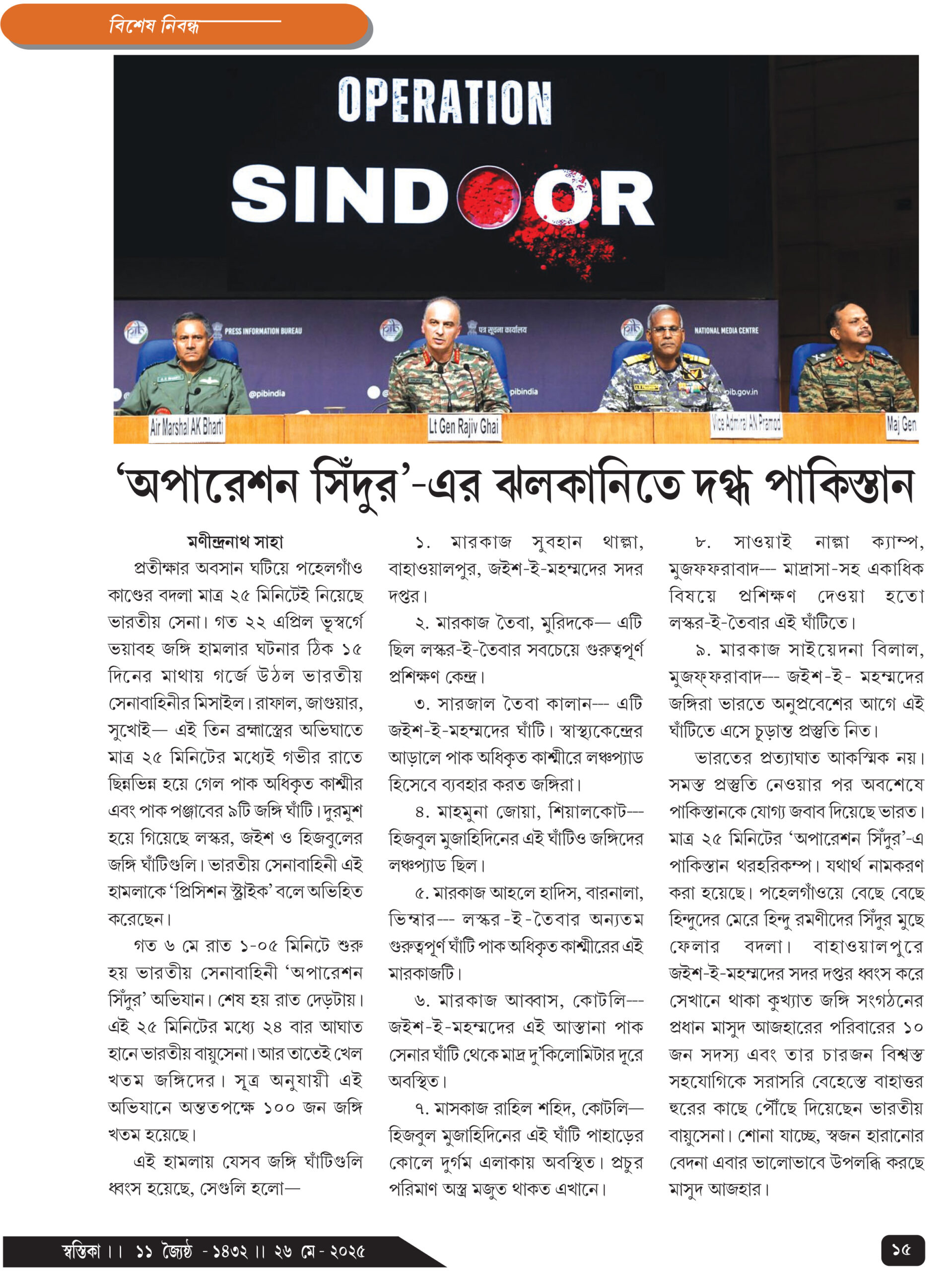 ‘অপারেশন সিঁদুর’-এর ঝলকানিতে দগ্ধ পাকিস্তান