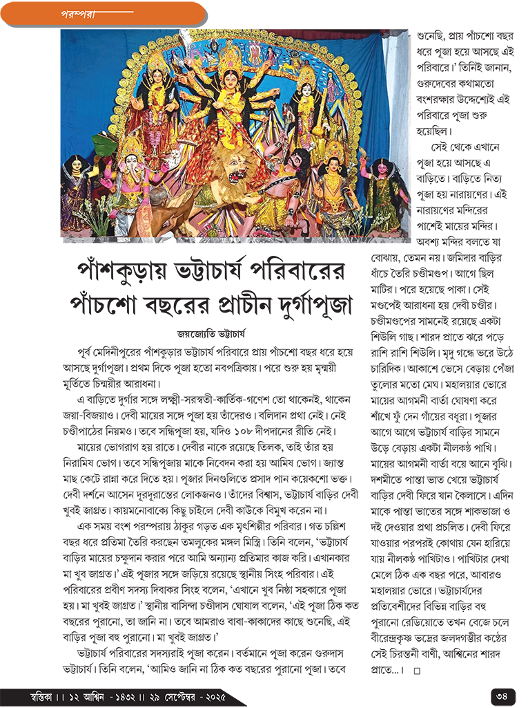 পাঁশকুড়ায় ভট্টাচার্য পরিবারের পাঁচশো বছরের প্রাচীন দুর্গাপূজা